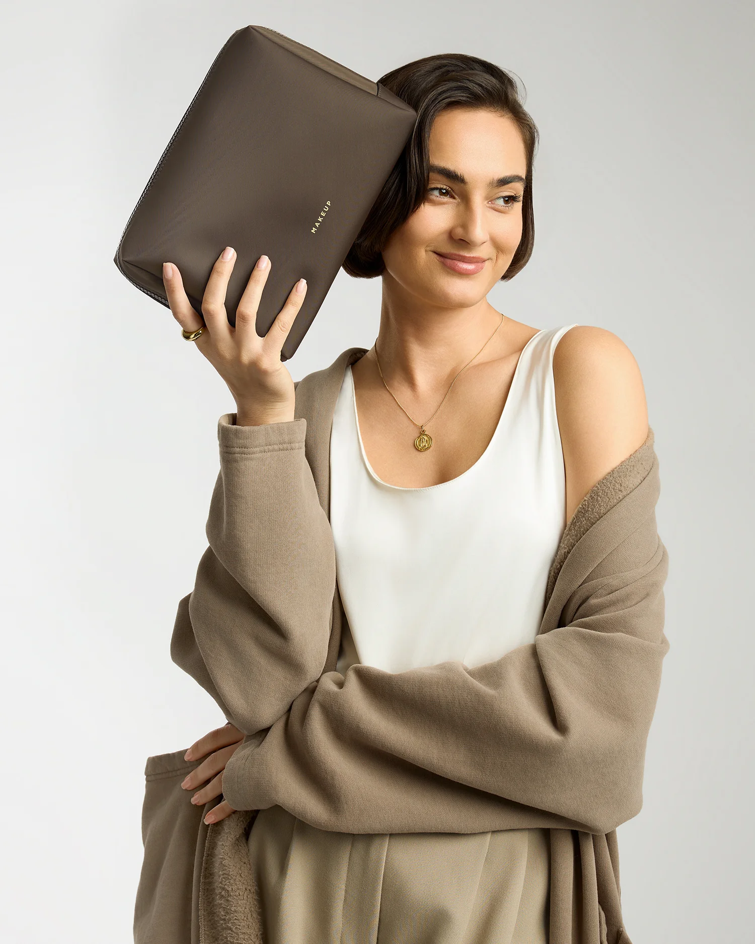 The Makeup Toiletry Bag is designed to hold all your makeup essentials. Everything has its place, ensuring you're always glam-ready, no matter where your travels take you. Brushes, foundation, bronzers, mascara--CHECK! No more digging through a sea of products to find that signature red lipstick.