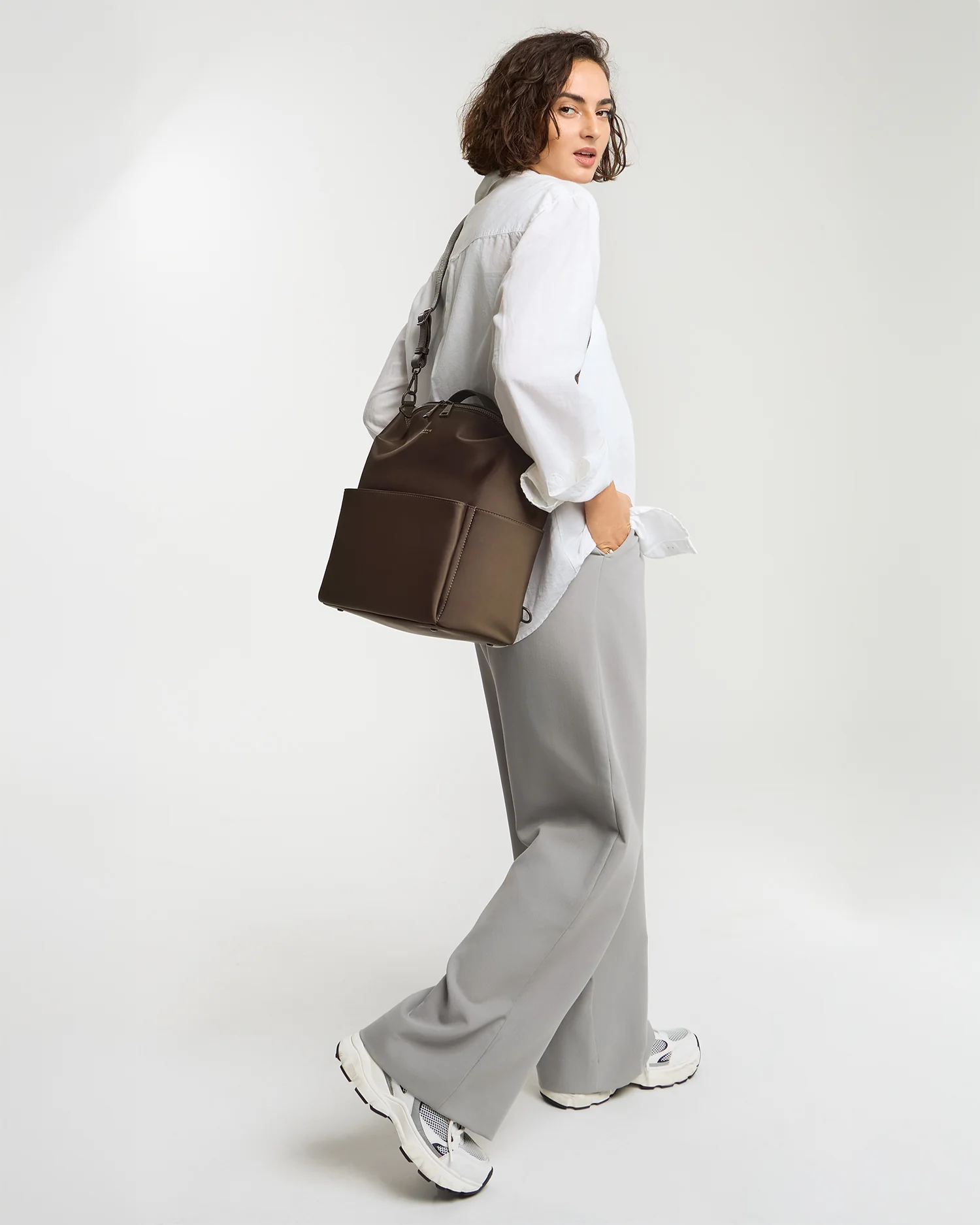 Crafted with our bestselling silk-like nylon that you already love, this mini design is durable, wipeable and lightweight. Her straps are made with smooth‑to‑the‑touch Nappa leather and are completely detachable. She is spacious and organized, so fill her up—she can handle it. This hot new mini is perfect for those days when you feel like traveling light or when your little babe all of a sudden is a toddler. Where does the time go?! We’re still trying to figure that out, but rest assured – the Stevie Mini is here to make it all better.